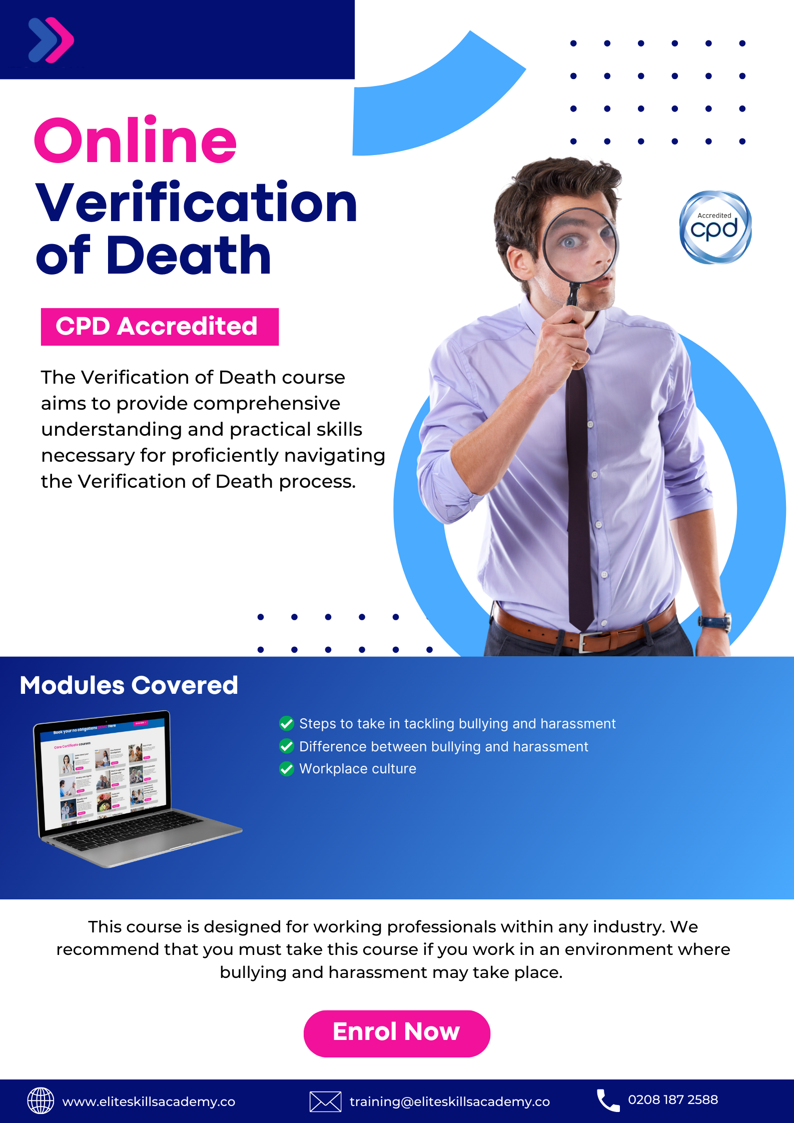 The Verification of Death course aims to provide comprehensive understanding and practical skills necessary for proficiently navigating the Verification of Death process.